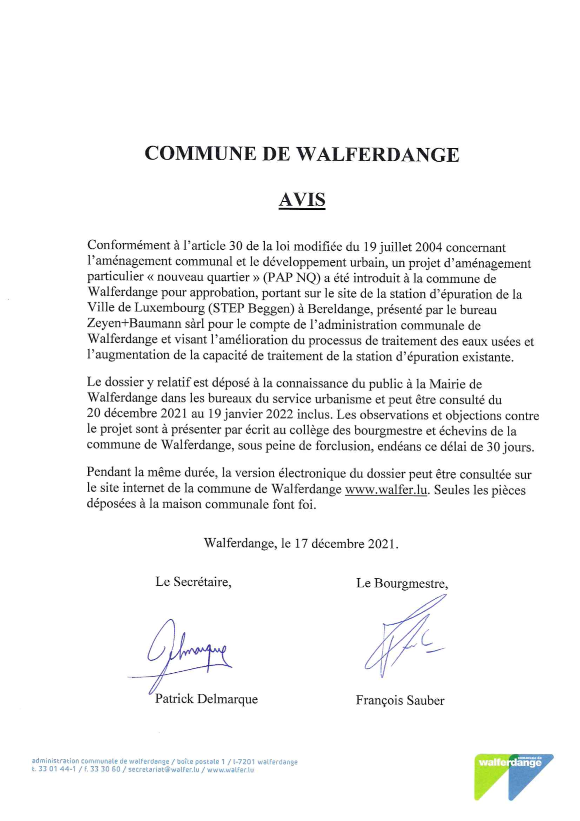 Avis – PAG modification ponctuelle station épuration – approbation Ministre Environnement
